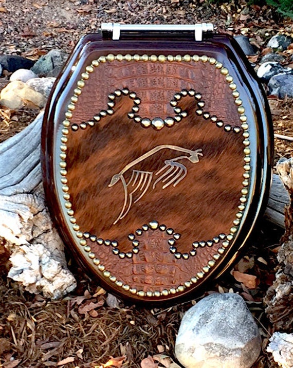 Siri Western Leather And Cowhide Toilet Seat Etsy