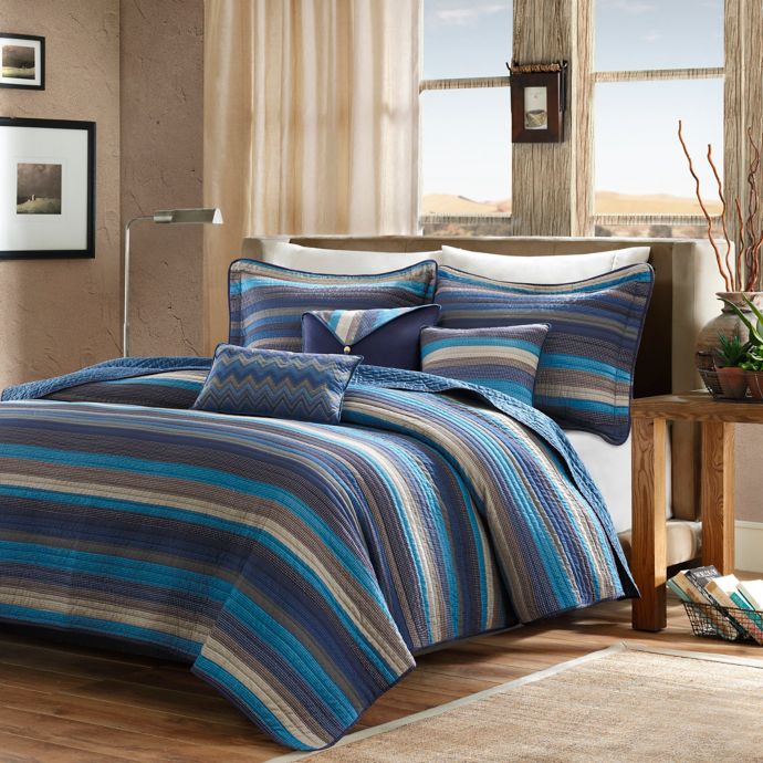 Madison Park Navy Tan Stripe Six Piece Quilted Coverlet Set Zulily